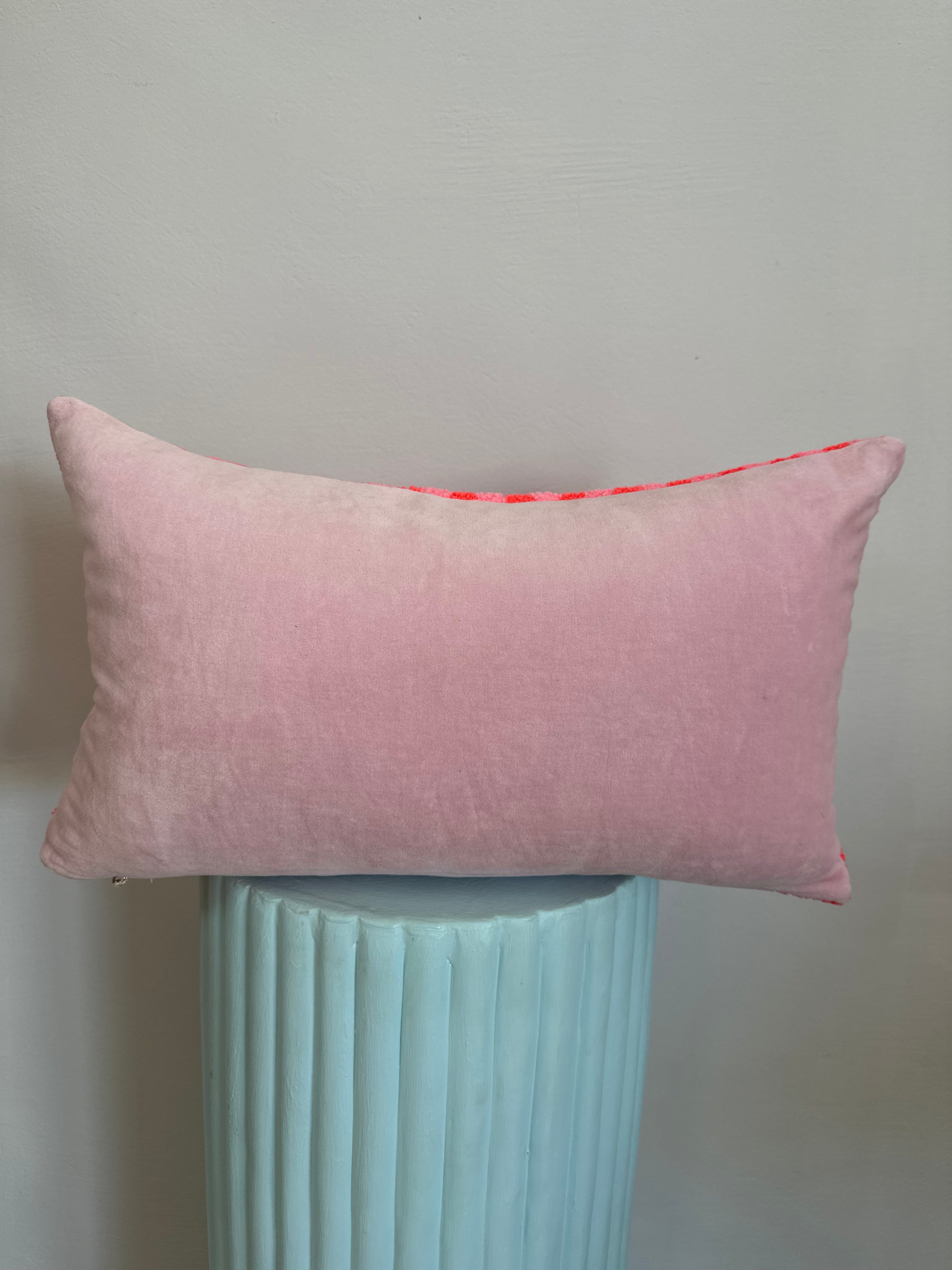 Add a pop of personality to your space with this charming cushion, featuring bold bright pink stripes paired with a delicate red "amour" embroidery. Perfect for injecting a touch of romance and whimsy into any room, this playful piece brings warmth and character to your décor. Whether styled on a bed, sofa, or reading nook, it's the ideal accent to spark joy and conversation.