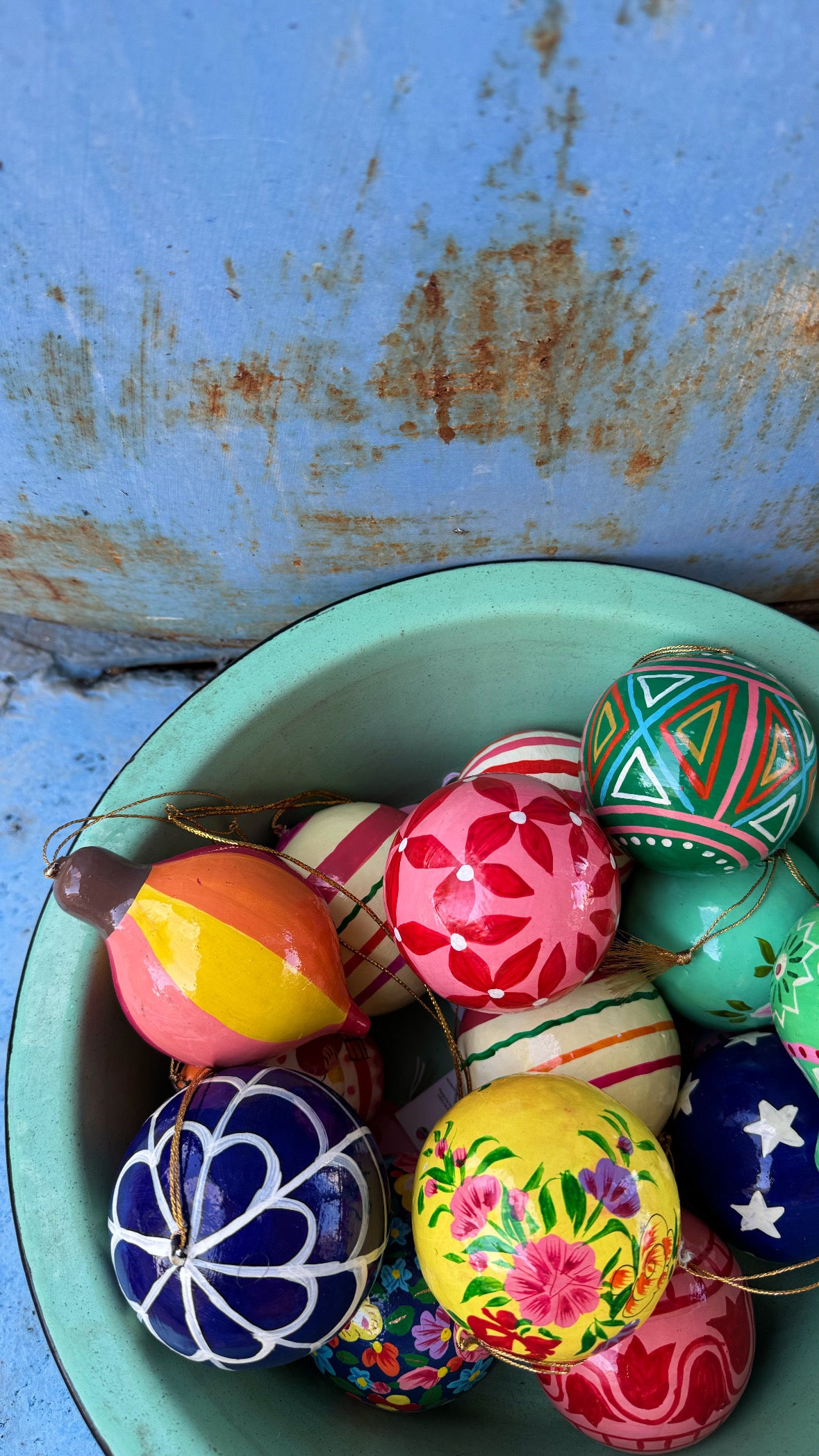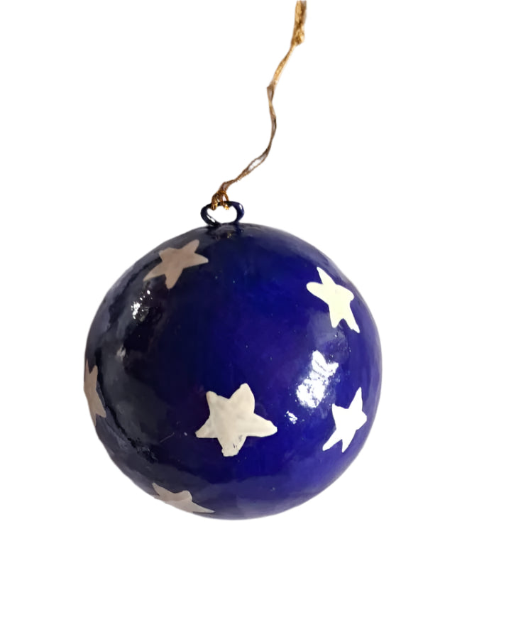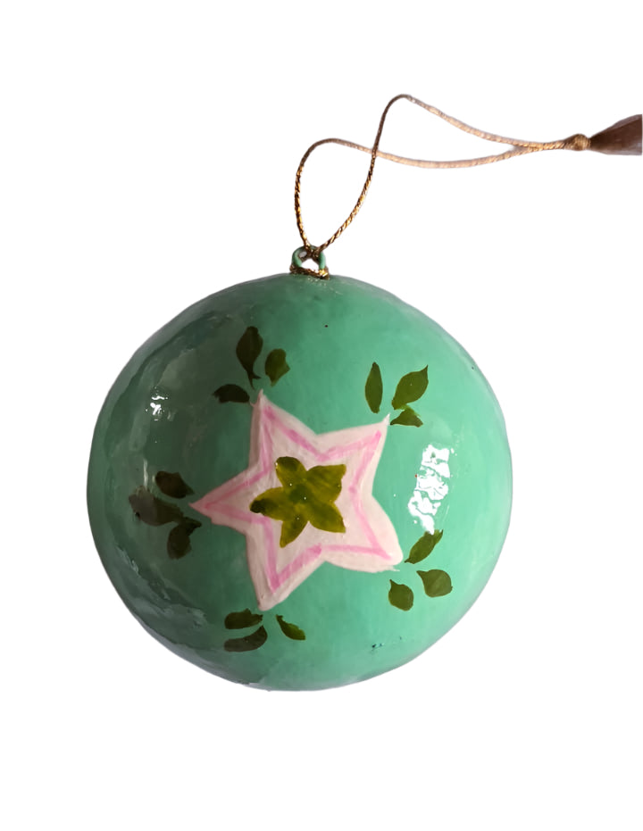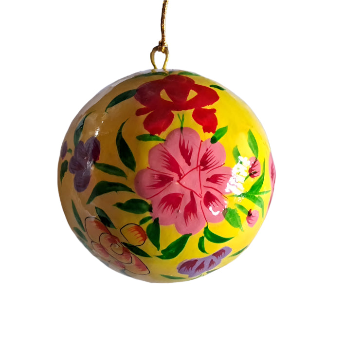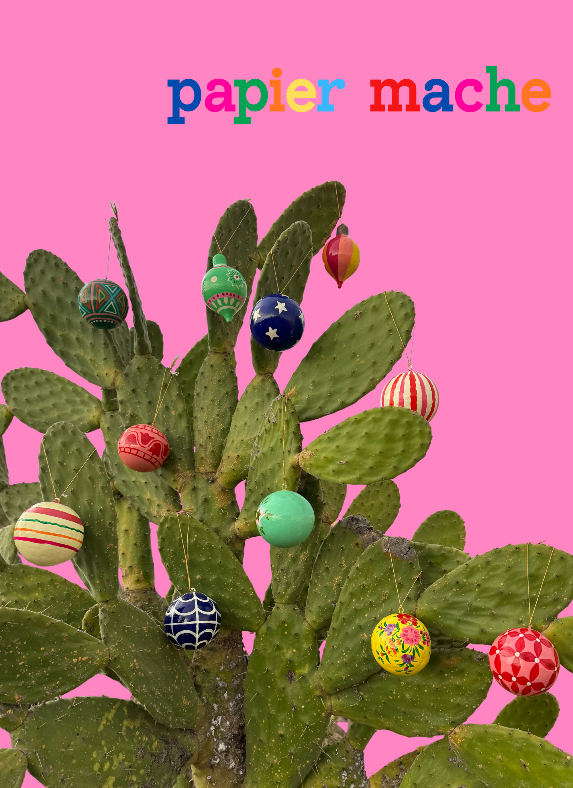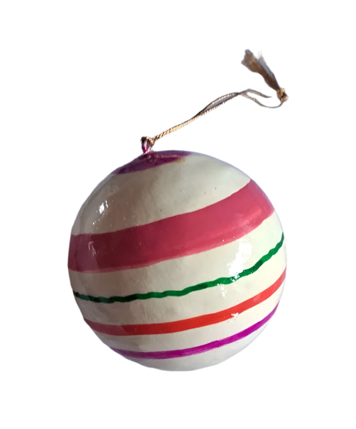 These charming hand-painted papier mache baubles, each about 8cm in size, come in nine playful designs featuring intricate patterns. Perfect for adding a splash of fun to your holiday decorations, they hang beautifully from a gold twisted cord, bringing a touch of whimsy to any space.