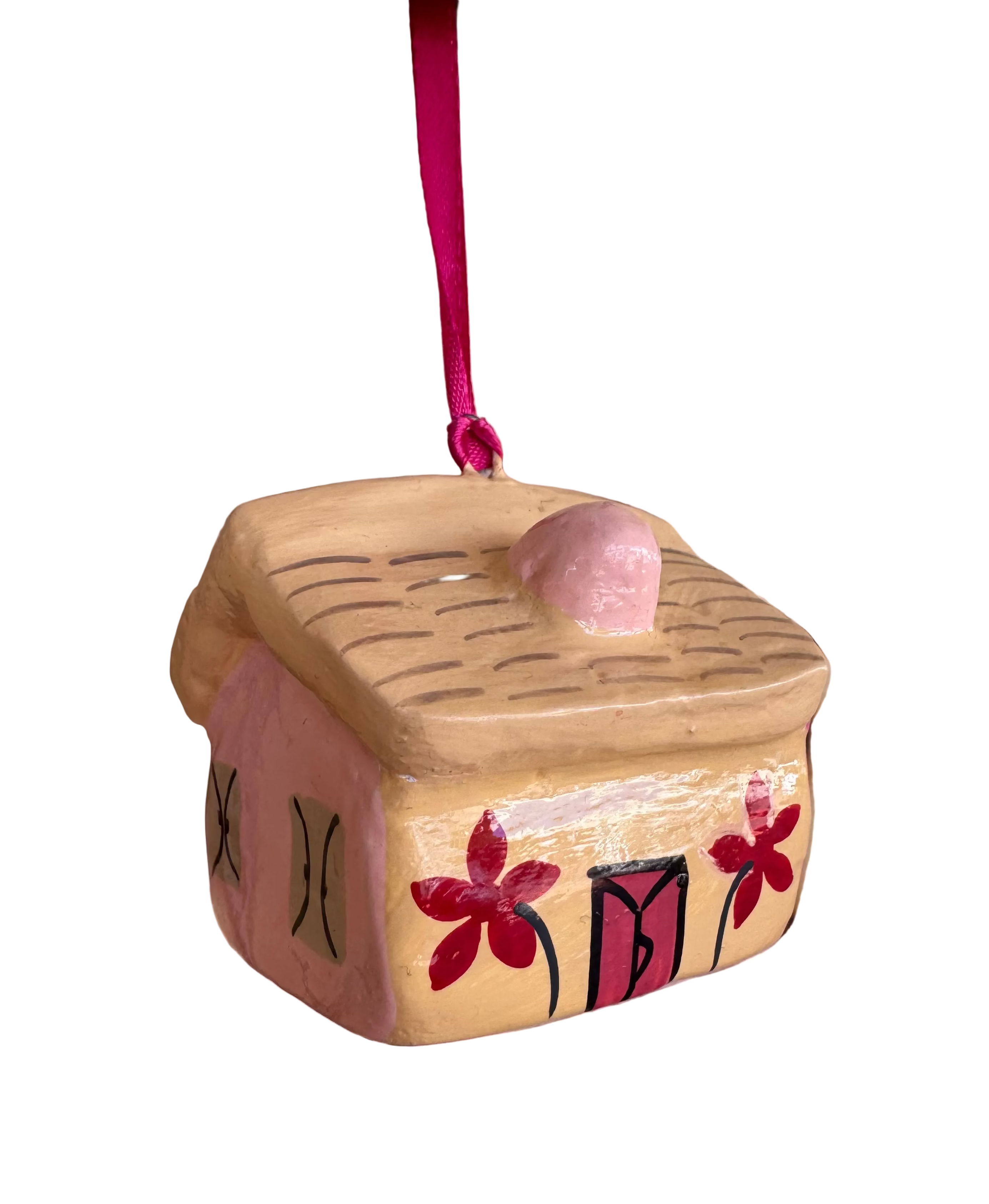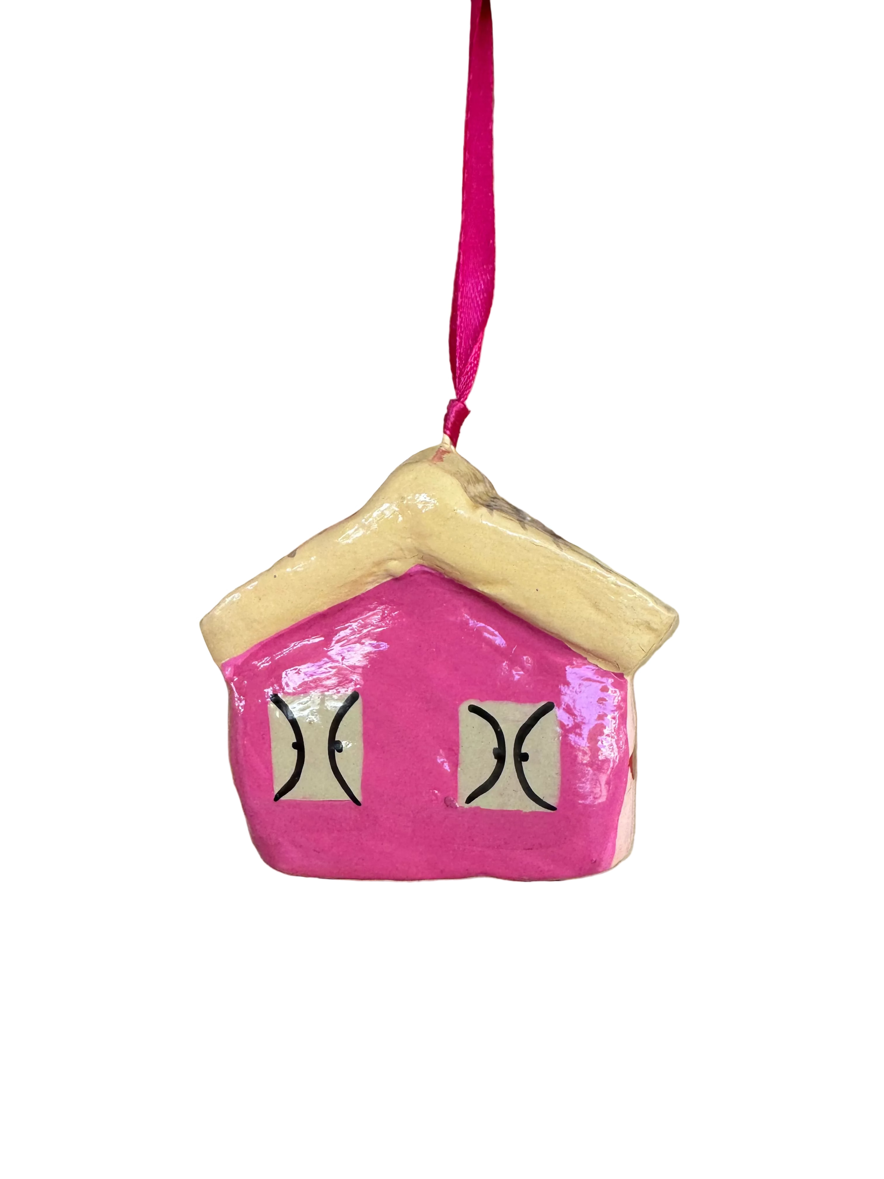 Light Pink Painted House Papier Mache Ornament
