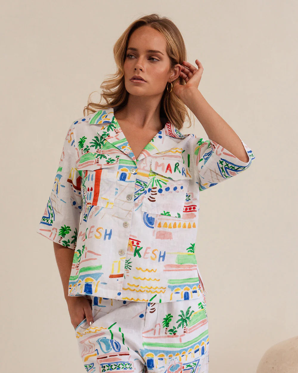 Add a splash of adventure to your wardrobe with this 100% Linen Safari Shirt featuring a vibrant Marrakesh print. Bright and breezy, it’s perfect for bringing playful energy to any outing while keeping you cool and comfortable all day long. Embrace the spirit of exploration with a shirt that’s as lively as you are!