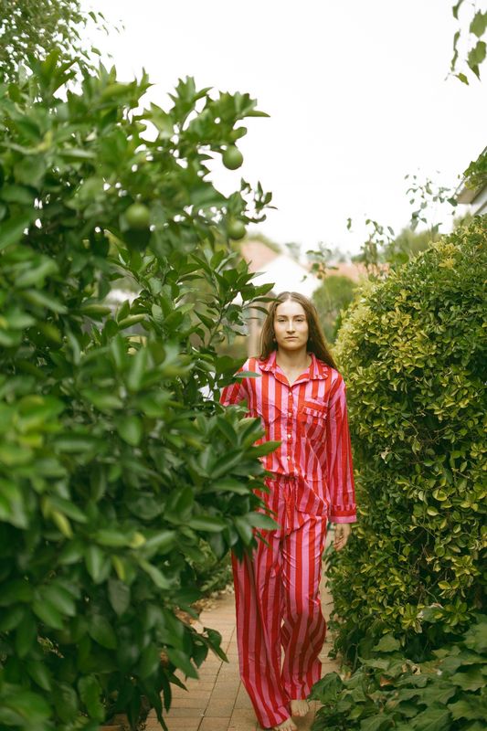 Designed for comfort with a playful edge, the Molly Red Pink Cotton Pyjama Set is crafted from soft, breathable cotton in a vibrant red and pink colourway. Ideal for sleeping, lounging and relaxed mornings, this set is made to feel as good as it looks.