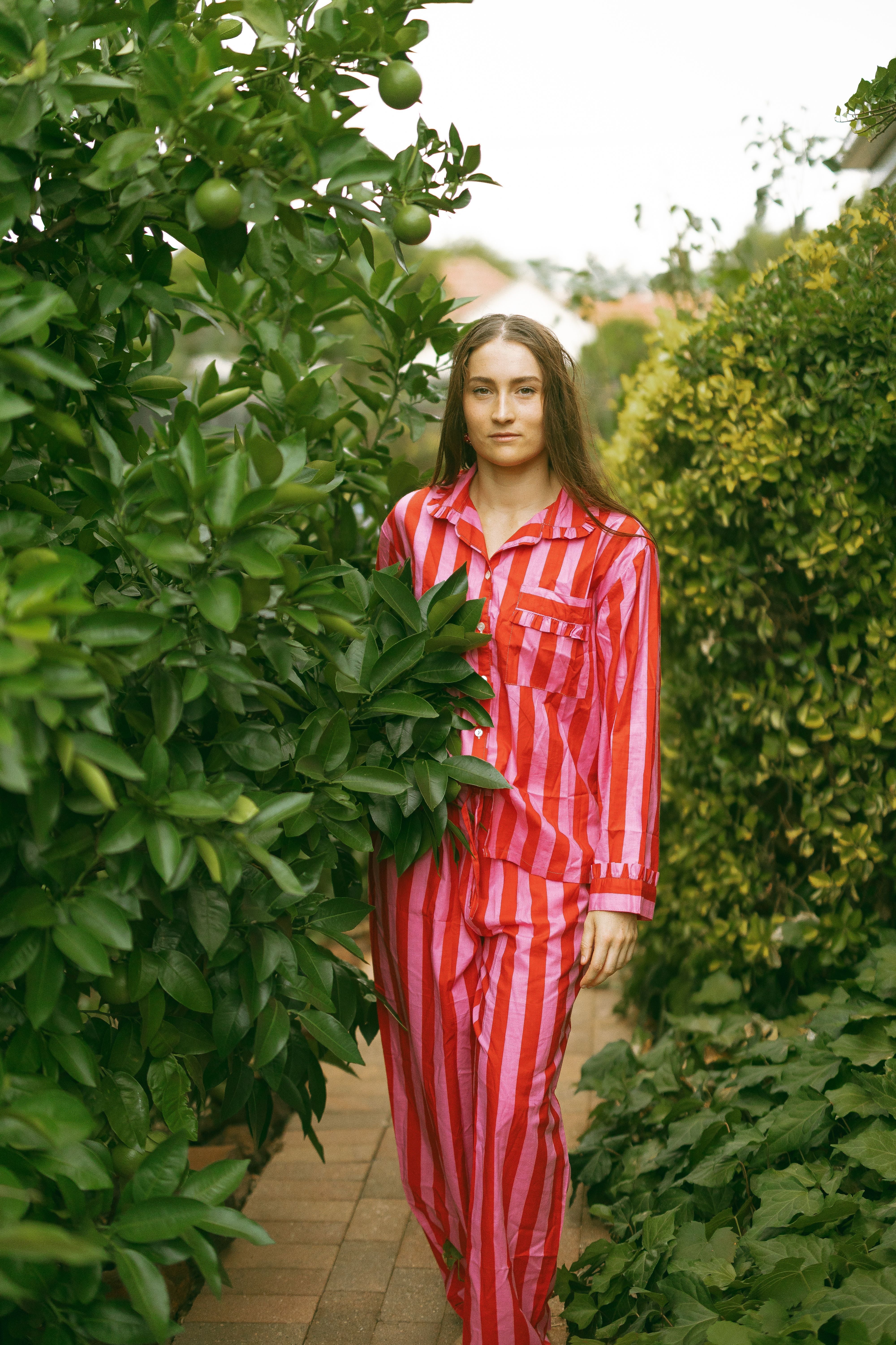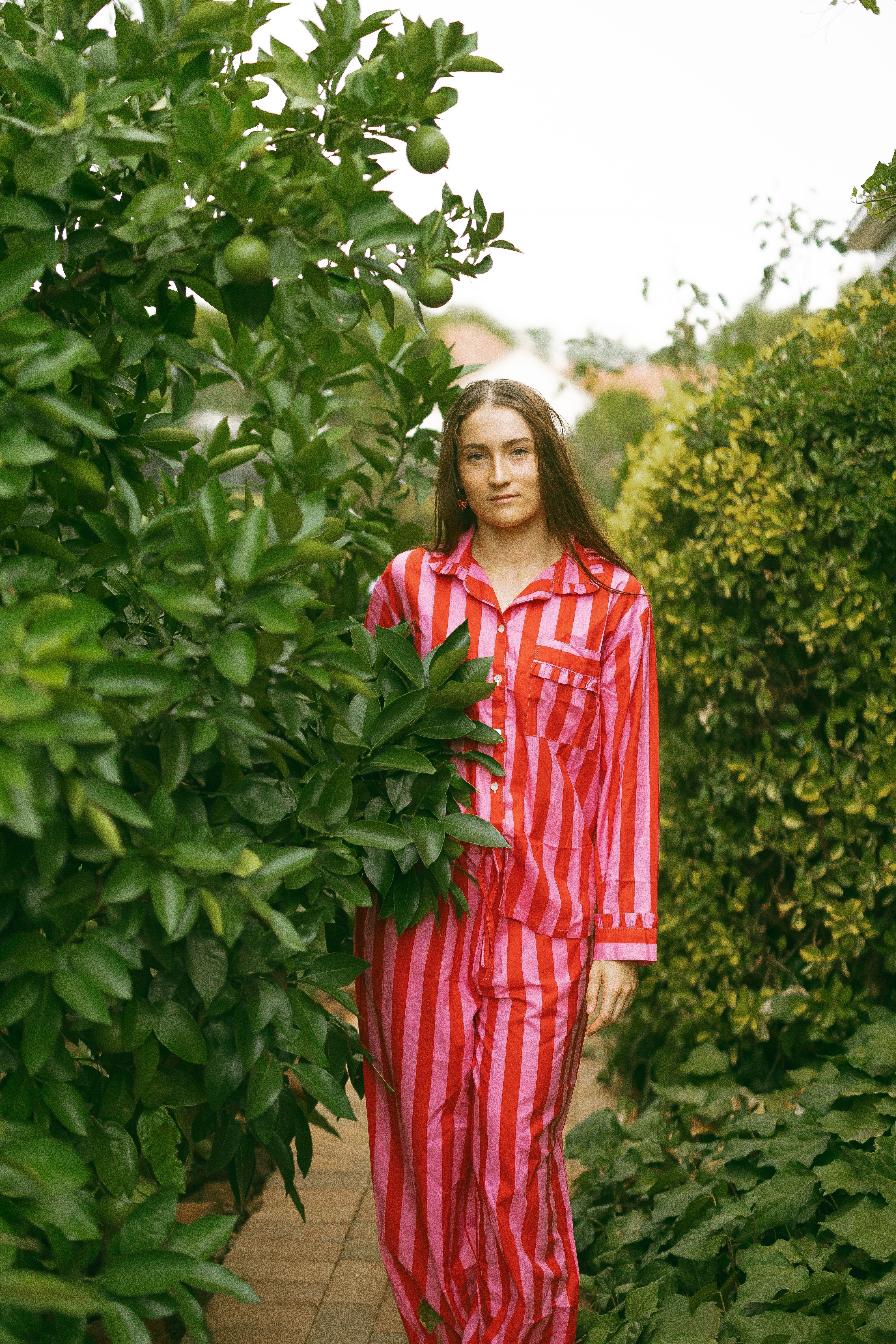 Molly Red Pink Stripe Cotton Pyjama Set