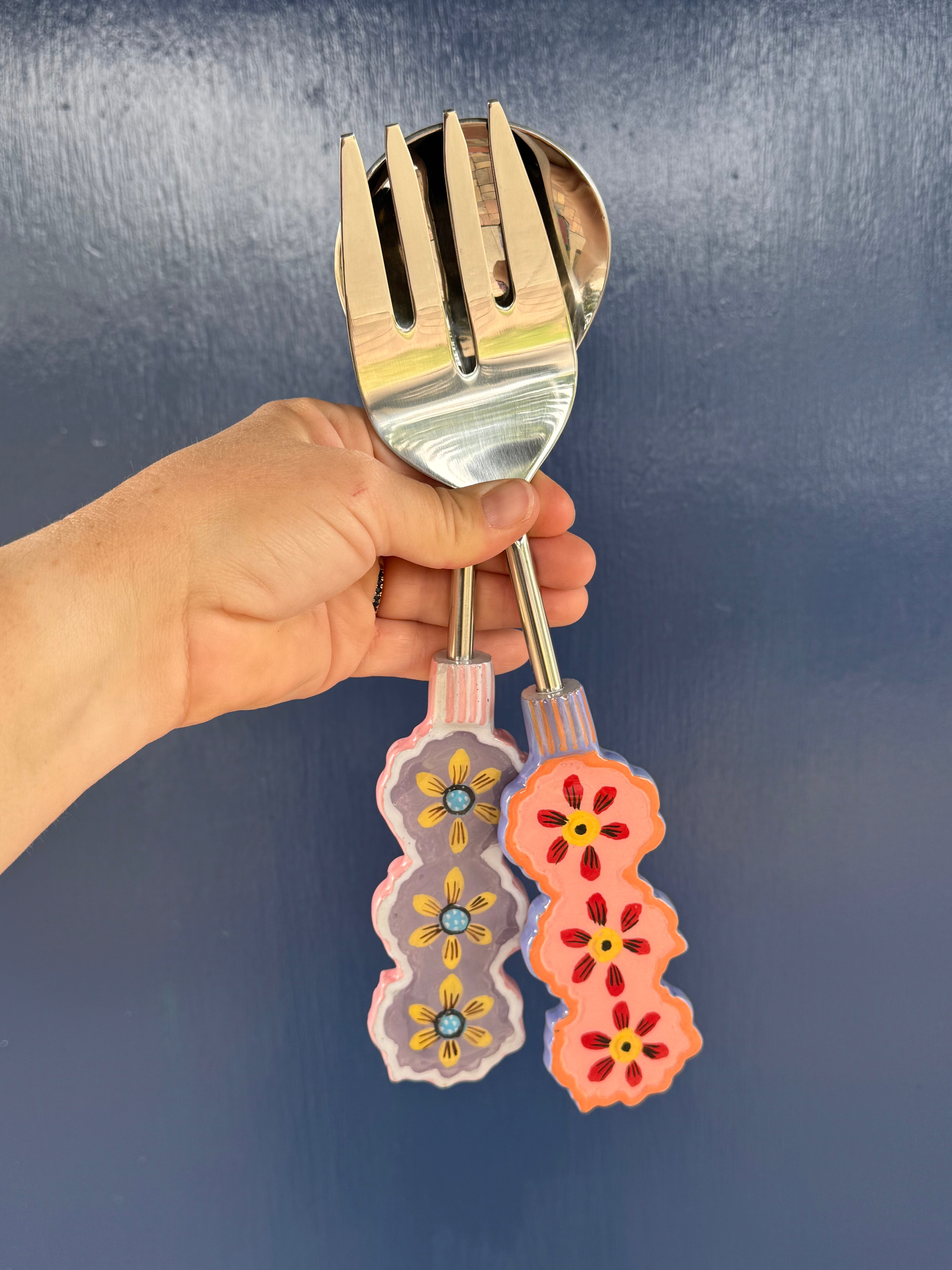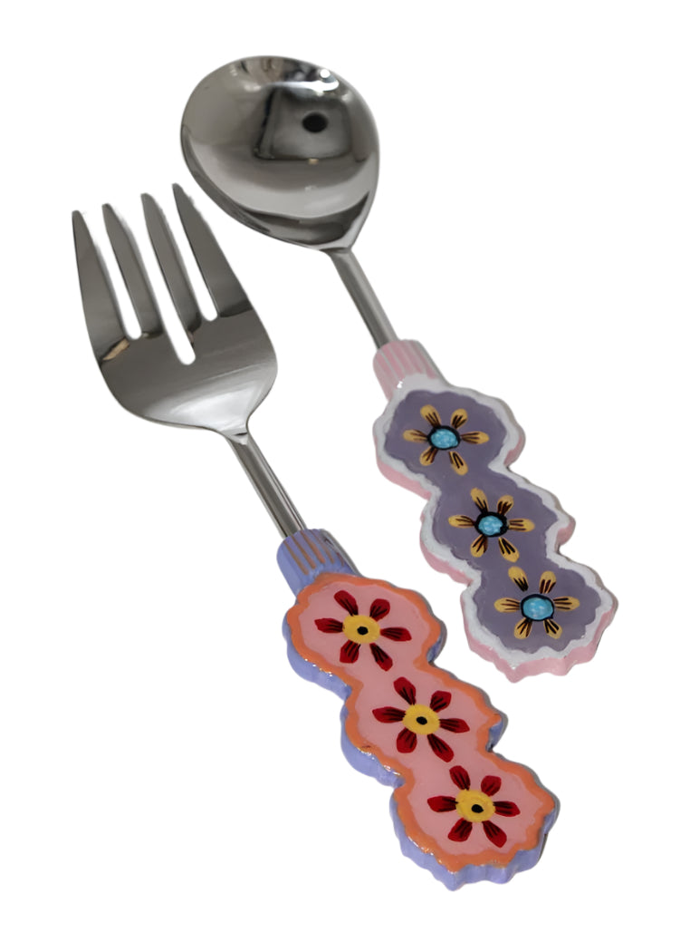 Bring a burst of colour to your table with the Zinnia Salad Servers! Measuring 28cm by 7cm, these servers feature hand-painted floral designs on the handles, crafted in beautiful vibrant colour that adds a playful touch to your meals. Made from durable stainless steel, they promise long-lasting use. Beautifully packaged, they’re perfect for gifting or brightening up your own kitchen. Also available in matching cheese knife set and spreaders.