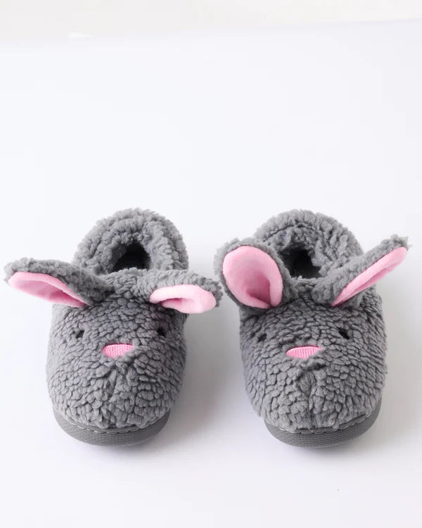 Hop into cosy with our Fluffy Grey Bunny Sherpa Kids Slippers! Soft sherpa inside and out with a sturdy rubber sole, these novelty favourites keep little toes warm and happy from bedtime stories to weekend lounging. Pop them on and enjoy the giggles!